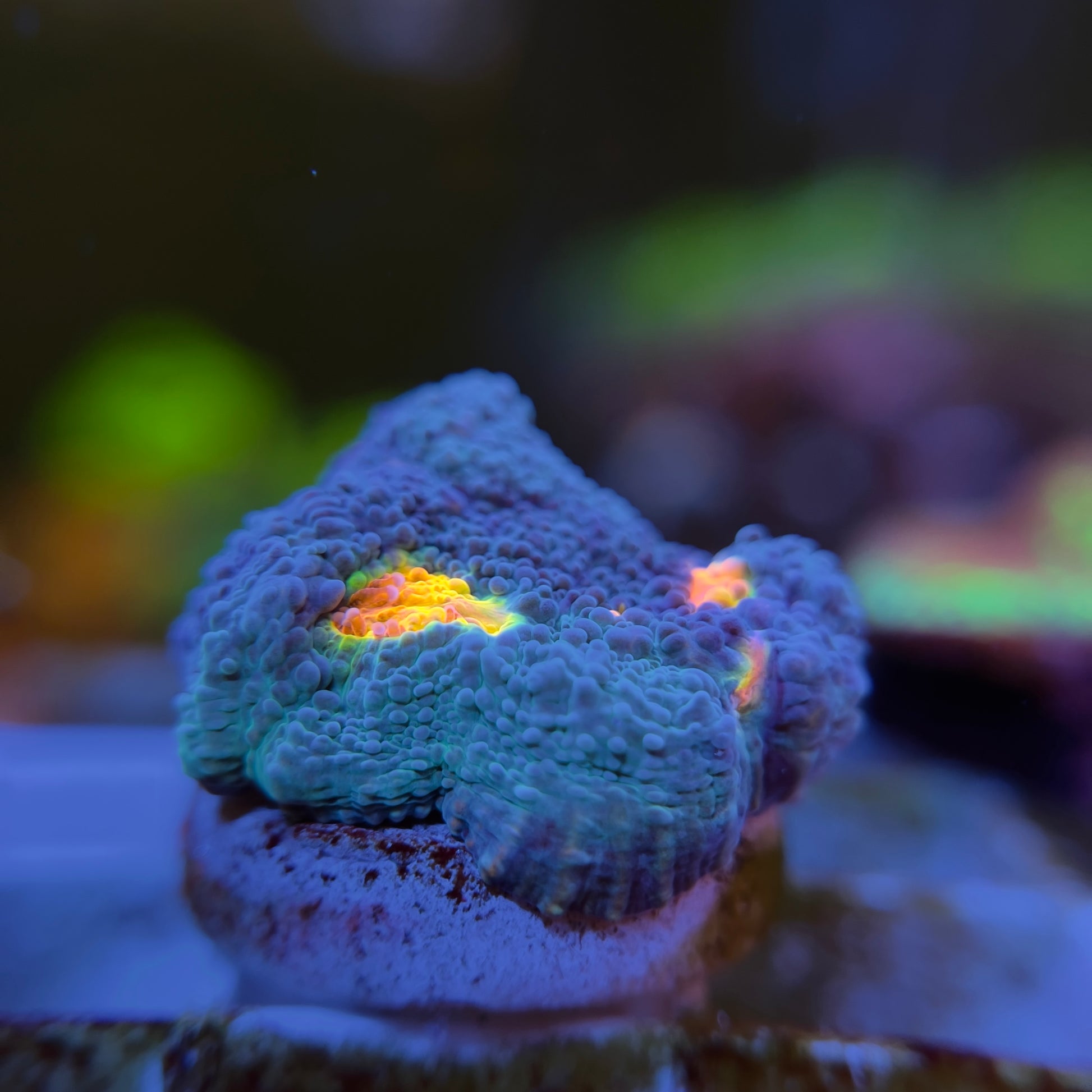 Bring the energy of a tropical storm into your reef tank with the Miami Hurricane Chalice, a stunning and popular LPS coral variant celebrated for its dazzling multicolor scheme and captivating texture. Each frag is 3/4-1”