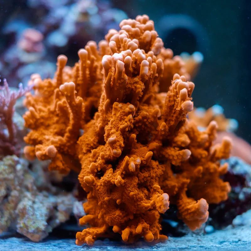 Elevate your reef aquarium with the dazzling Montipora setosa, a distinctive Small Polyp Stony (SPS) coral prized for its intense coloration and unique growth form.